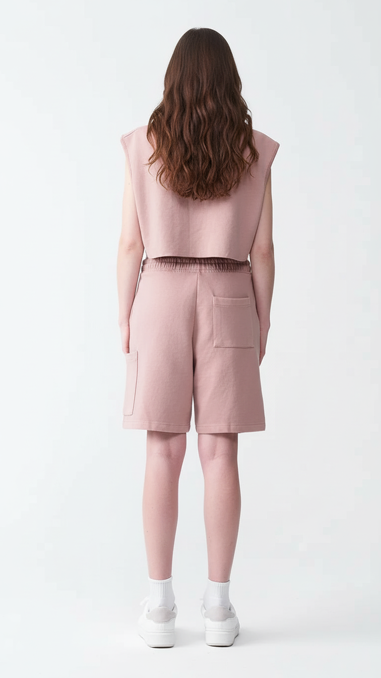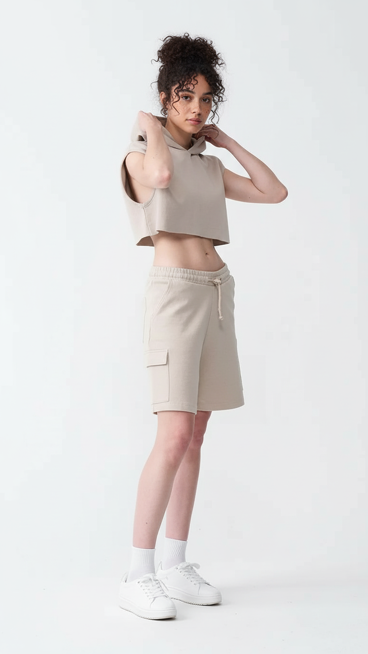 14 OZ Sleeveless Garment Dye Interlock Hooded Crop Top Short Set